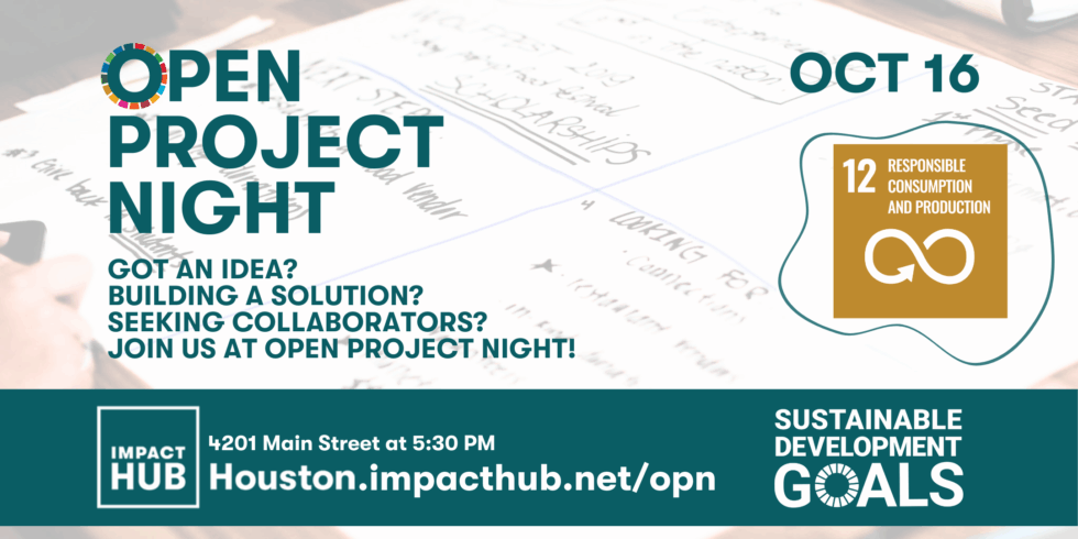 Impact Hub Houston brings you Open Project Night, a monthly opportunity to come together to work on solutions for some of Houston’s most pressing issues. Our city is full of changemakers across all ages, cultures, skillsets, and industries. This is your chance to connect and collaborate for the greater good.