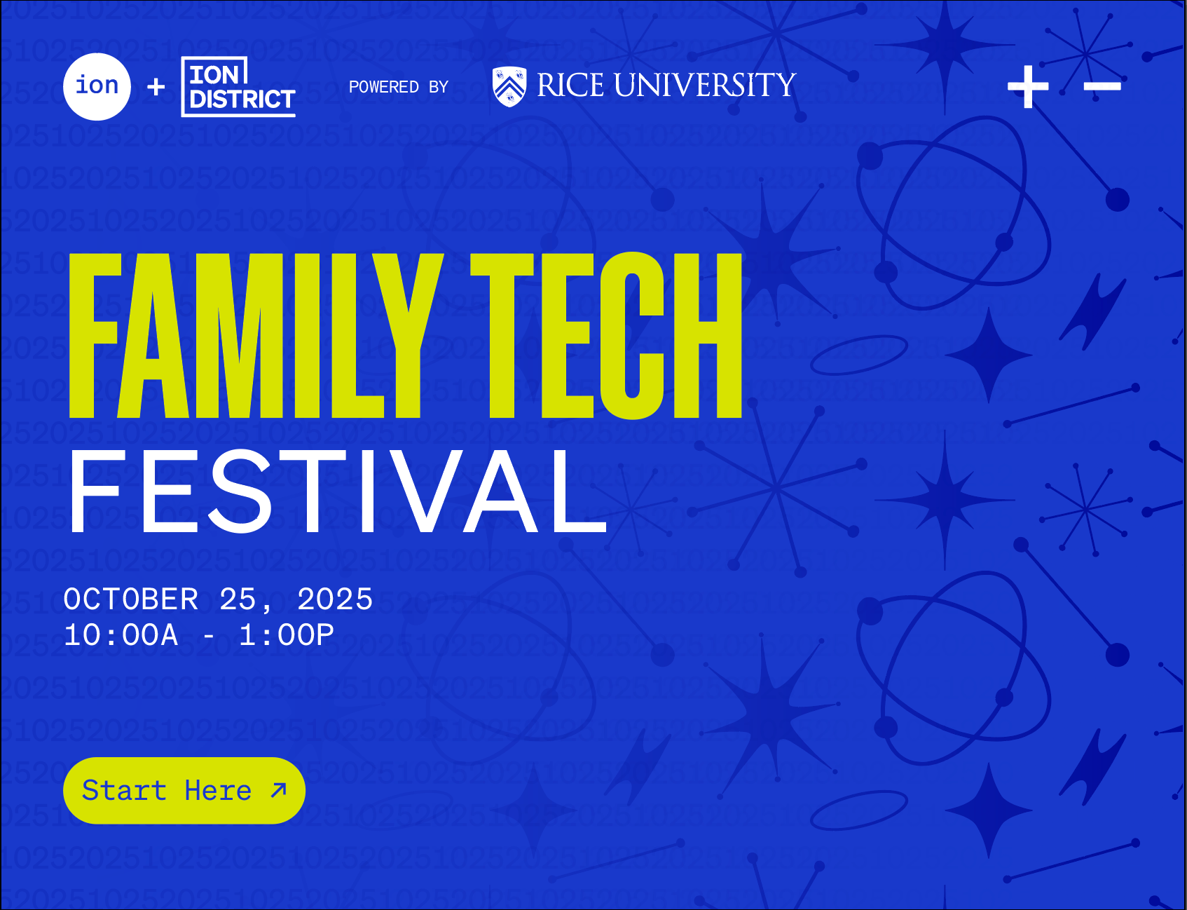 Join the Ion and our partners in the inaugural Ion Family Tech Fest! During the event, your family will have access to hands-on Science, Technology, Engineering, Arts, and Math (STEAM) and Entrepreneurial workshop experiences. Students will leave Family Tech Festival with inspiration and the understanding that accessing STEAM-related careers is a possibility, as well as with access to a network of like-minded peers to help make that possibility a reality. This event is come-and-go, so please join us in your sports uniforms, pajamas, or Halloween costumes!