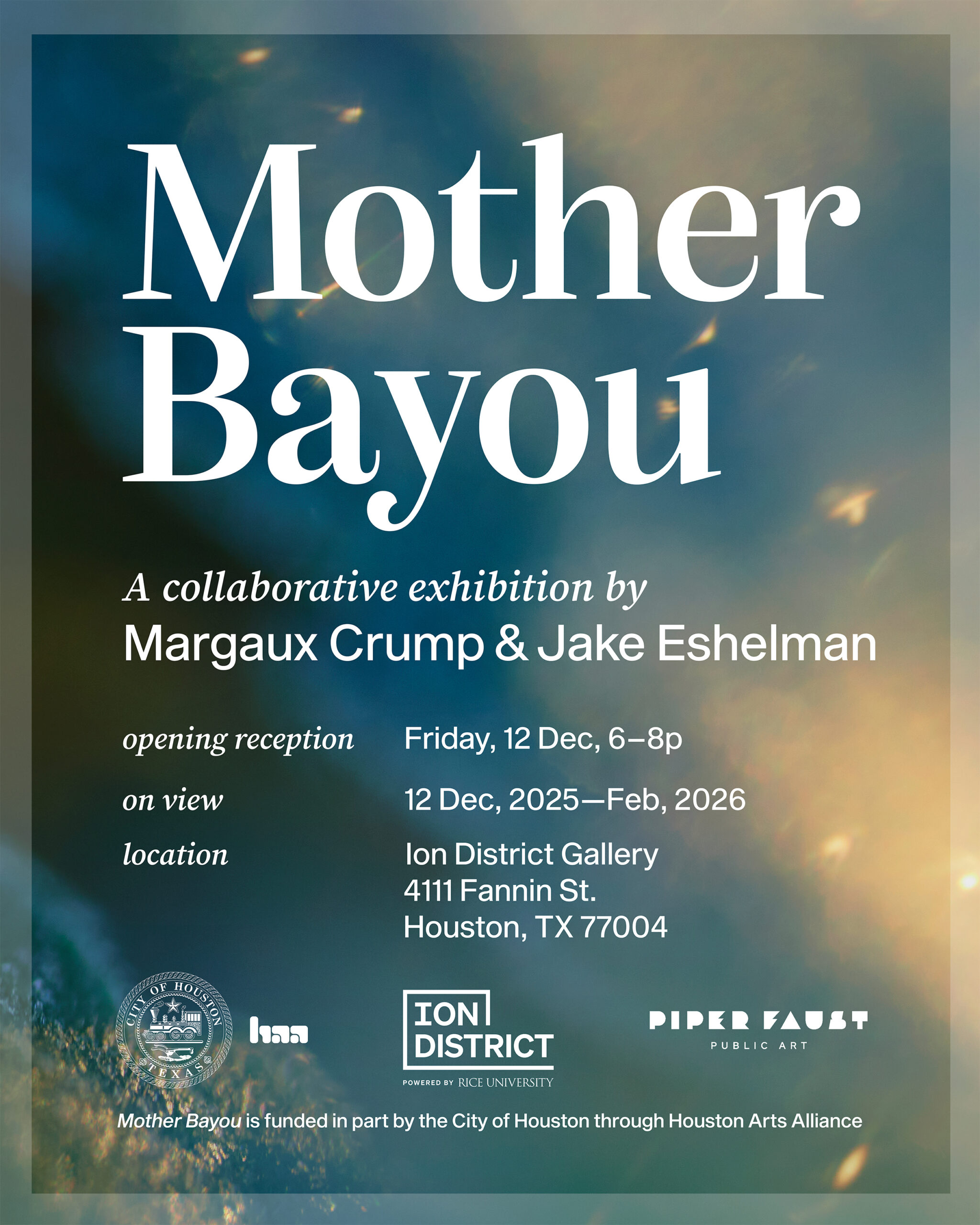 DetailsOVERVIEW Inspired by the dynamic, yet often-overlooked waters who animate our city, Mother Bayou is a collaborative exhibition by Margaux Crump and Jake Eshelman that wonders what might be possible […]