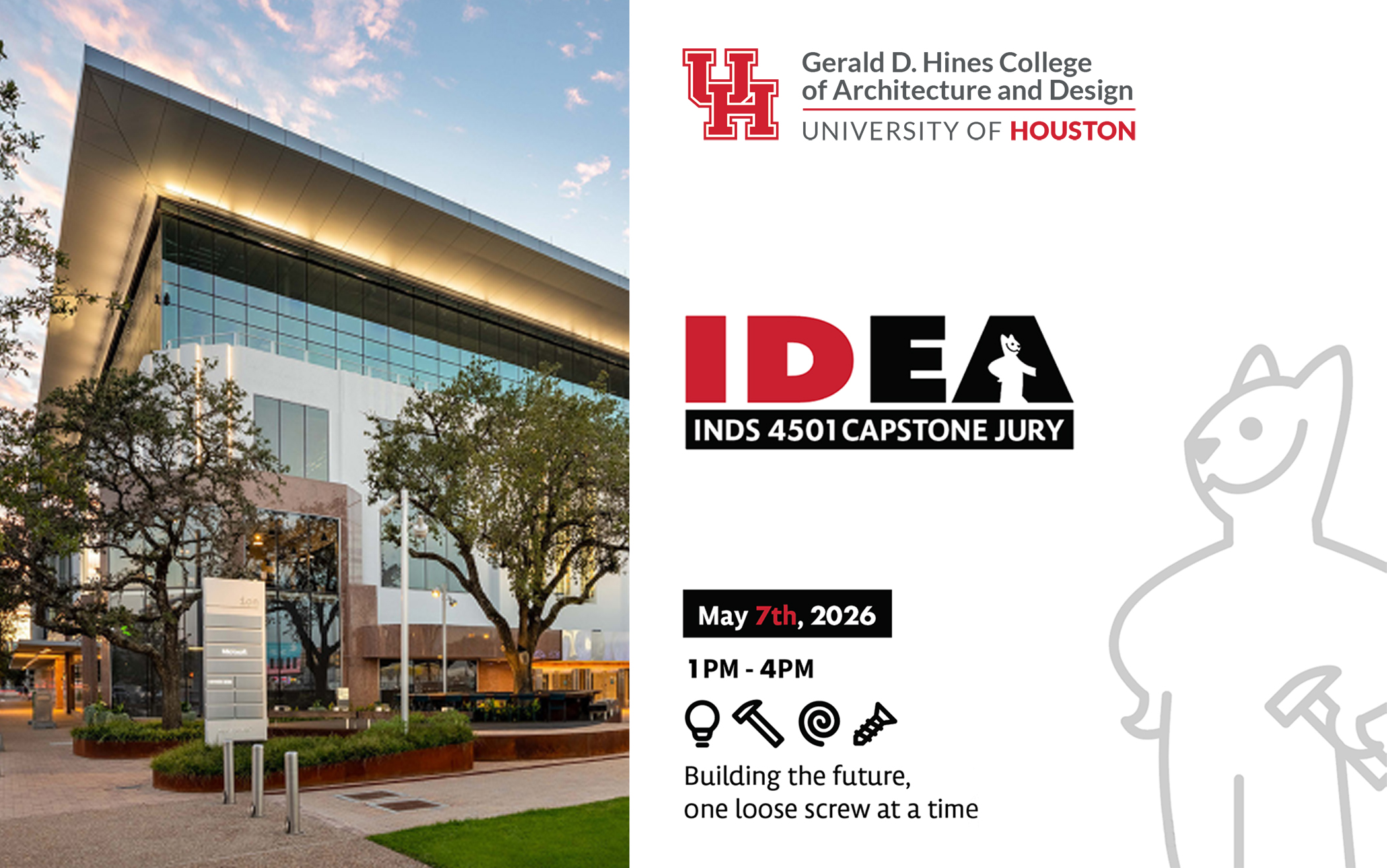DetailsRegister here: https://www.uh.edu/architecture/industrial-design/ The Industrial Design program at the Gerald D. Hines College of Architecture and Design, University of Houston, is proud to present its annual Capstone Project Jury at the ION Center. This year’s graduating students have developed a diverse and impactful range of design solutions addressing real-world challenges. The projects span multiple domains, […]